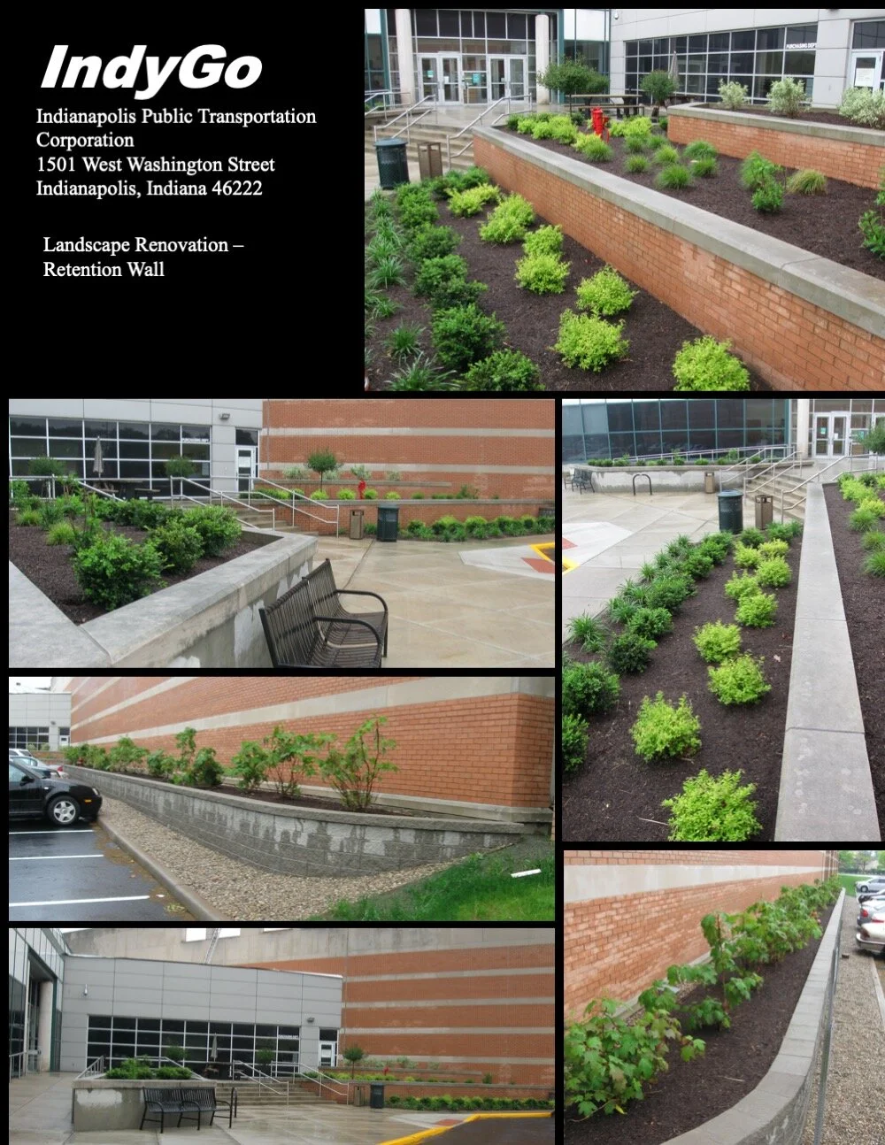 IndyGo is the Indianapolis Public Transportation Corporation. This is the landscape renovation and retention wall design done at their headquarters location in Indianapolis, Indiana.